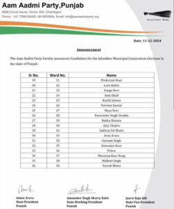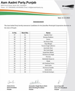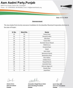 ਇਨ੍ਹਾਂ ‘ਚ ਲੁਧਿਆਣਾ ਤੋਂ 94, ਪਟਿਆਲਾ ਤੋਂ 56 ਅਤੇ ਅੰਮ੍ਰਿਤਸਰ ਤੋਂ 74 ਵਾਰਡਾਂ ‘ਤੇ ਟਿਕਟਾਂ ਦਾ ਐਲਾਨ ਕੀਤਾ ਗਿਆ ਹੈ। ਇਸ ਬਾਰੇ ਪਾਰਟੀ ਦੇ ਪੰਜਾਬ ਪ੍ਰਧਾਨ ਅਮਨ ਅਰੋੜਾ ਵਲੋਂ ਪ੍ਰੈੱਸ ਕਾਨਫਰੰਸ ਕਰਕੇ ਜਾਣਕਾਰੀ ਸਾਂਝੀ ਕੀਤੀ ਗਈ ਹੈ।