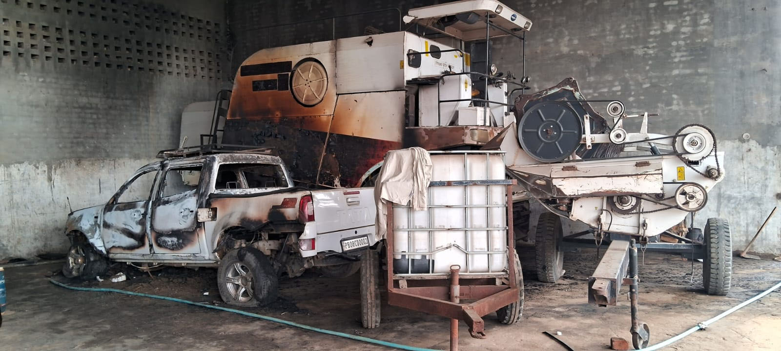ਭੋਗਪੁਰ (ਰਾਣਾ ਭੋਗਪੁਰੀਆ) : ਬੀਤੀ ਦੇਰ ਰਾਤ ਪਿੰਡ ਕਾਲਾ ਬੱਕਰਾ ਵਿਖੇ ਦੁਆਬੇ ਦੀ ਨਾਮਵਰ ਕਿਸਾਨ ਜਥੇਬੰਦੀ ਦੇ ਕਿਸਾਨ ਆਗੂ ਦੀ ਸੈਡ ਵਿੱਚ ਕੰਬਾਈਨ, ਟਰੈਕਟਰ ਸਮੇਤ ਖੜ੍ਹੇ ਚਾਰ ਹੋਰ ਵਾਹਨਾਂ ਨੂੰ ਅੱਗ ਲਗਾਏ ਜਾਣ ਕਾਰਨ ਲੱਖਾਂ ਰੁਪਏ ਦੇ ਨੁਕਸਾਨ ਹੋ ਜਾਣ ਦੀ ਖ਼ਬਰ ਪ੍ਰਾਪਤ ਹੋਈ ਹੈ। ਇਸ ਮਾਮਲੇ ਸਬੰਧੀ ਜਾਣਕਾਰੀ ਦਿੰਦੇ ਹੋਏ ਅਮਰਜੀਤ ਸਿੰਘ ਪੁੱਤਰ ਸੇਵਾ ਸਿੰਘ ਨਿਵਾਸੀ ਕਾਲਾ ਬੱਕਰਾ ਜੋ ਕਿਸਾਨ ਆਗੂ ਅਤੇ ਪਿੰਡ ਦੇ ਸਰਪੰਚ ਦਵਿੰਦਰ ਸਿੰਘ ਮਿੰਟਾ ਦੇ ਭਰਾ ਹਨ। ਉਨ੍ਹਾਂ ਨੇ ਦੱਸਿਆ ਕਿ ਉਹ ਰੋਜ਼ਾਨਾ ਦੀ ਤਰ੍ਹਾਂ ਬੀਤੀ ਰਾਤ ਵੀ ਪਿੰਡ ਦੇ ਬਾਹਰ ਫਾਰਮ ਹਾਊਸ ‘ਤੇ ਸ਼ੈਡ ਵਿੱਚ ਖੜ੍ਹੇ ਵਾਹਨਾਂ ਅਤੇ ਹੋਰ ਸਮਾਨ ਦੀ ਸੇਫਟੀ ਲਈ ਸ਼ੈਡ ਨਜ਼ਦੀਕ ਬਣੇ ਕਮਰੇ ਵਿੱਚ ਸੌ ਰਿਹਾ ਸੀ।