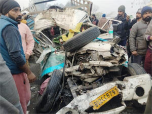 ਗੁਰੂਹਰਸਹਾਏ : ਫਿਰੋਜ਼ਪੁਰ ਵਿਚ ਵੱਡਾ ਹਾਦਸਾ ਵਾਪਰਿਆ ਹੈ। ਇਥੇ ਪਿਕਅੱਪ ਗੱਡੀ ਦੀ ਟੈਂਕਰ ਨਾਲ ਟੱਕਰ ਹੋ ਗਈ। ਇਸ ਹਾਦਸੇ ਵਿਚ 8 ਦੀ ਮੌਤ ਹੋ ਗਈ , ਇਨ੍ਹਾਂ ਹੀ ਨਹੀਂ 20 ਤੋਂ ਵੱਧ ਲੋਕ ਜ਼ਖਮੀਂ ਹੋਏ ਹਨ, ਜਿਨ੍ਹਾਂ ਨੂੰ ਹਸਪਤਾਲ ਪਹੁੰਚਾਇਆ ਜਾ ਰਿਹਾ ਹੈ। ਮੌਕੇ ਤੇ ਐਂਬੂਲੈਂਸ, ਐੱਸ.ਐੱਸ.ਐੱਫ. ਦੀ ਟੀਮ ਅਤੇ ਪੁਲਸ ਪਾਰਟੀ ਪਹੁੰਚ ਗਈ ਹੈ। ਪਿੰਡ ਦੇ ਨੌਜਵਾਨ ਅਤੇ ਲੋਕਾਂ ਵੱਲੋਂ ਸਹਾਇਤਾ ਕੀਤੀ ਜਾ ਰਹੀ ਹੈ ਤੇ ਜ਼ਖਮੀਆਂ ਨੂੰ ਤੁਰੰਤ ਹਸਪਤਾਲ ‘ਚ ਪਹੁੰਚਾਇਆ ਜਾ ਰਿਹਾ ਹੈ।