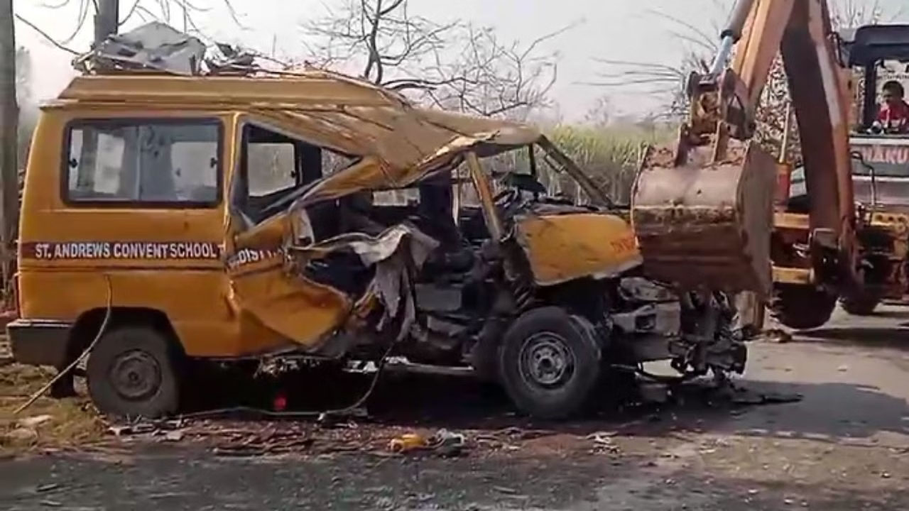 ਮੌਕੇ ‘ਤੇ ਸਥਾਨਕ ਲੋਕਾਂ ਨੇ ਦੱਸਿਆ ਕਿ ਸਕੂਲ ਵੈਨ ਟਰੈਕਟਰ ਟਰਾਲੀ ਦੇ ਪਿੱਛੇ ਇੰਨੀ ਜ਼ਬਰਦਸਤ ਤਰੀਕੇ ਨਾਲ ਵੱਜੀ ਕਿ ਡਰਾਈਵਰ ਦੇ ਗੰਭੀਰ ਸੱਟਾਂ ਲੱਗੀਆਂ ਹਨ। ਸਕੂਲੀ ਬੱਚੇ ਅਤੇ ਵੈਨ ਦੇ ਵਿੱਚ ਬੈਠਾ ਸਕੂਲੀ ਸਟਾਫ਼ ਫ਼ਿਲਹਾਲ ਬਾਲ-ਬਾਲ ਬਚ ਗਏ ਹਨ। ਮੌਕੇ ‘ਤੇ ਪੁੱਜੇ ਪੁਲਿਸ ਅਧਿਕਾਰੀਆਂ ਨੇ ਕਿਹਾ ਕਿ ਇਸ ਪੂਰੇ ਮਾਮਲੇ ਦੀ ਜਾਂਚ ਕੀਤੀ ਜਾ ਰਹੀ ਹੈ ਅਤੇ ਫ਼ਰਾਰ ਹੋਏ ਟਰੈਕਟਰ-ਟਰਾਲੀ ਦੇ ਡਰਾਈਵਰ ਨੂੰ ਫੜਨ ਦੇ ਲਈ ਕਾਰਵਾਈ ਸ਼ੁਰੂ ਕਰ ਦਿੱਤੀ ਹੈ।
