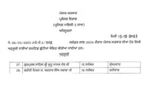 ਪੰਜਾਬ ‘ਚ ਲੱਗੀ ਛੁੱਟੀਆਂ ਦੀ ਝੜੀ, 15 ਤੋਂ 17 ਨਵੰਬਰ ਤਕ ਹੋਣਗੀਆਂ ਸਰਕਾਰੀ ਛੁੱਟੀਆਂ
